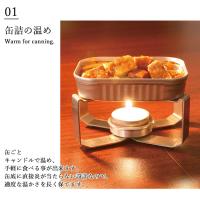 | 缶ごとキャンドルで温め、手軽に食べる事が出来ます。 缶詰の中の脂が固まっていて美味しくなかったり、電子レンジやガスが無い時の強い味方です。 缶底に直接炎が当たらない設計なので、適度な温かさを長く保てます。 |