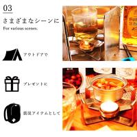 | 使い方はあなた次第です。 アウトドアで大勢で囲みながら。 手軽にプレゼントするのもオススメです。 防災キットの中に入れておけば、いざという時に食料の温めや、ろうそく台としても役立ちます。 |