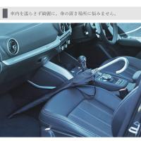 | 高い撥水性をもって作られた防水傘カバーは、車内で使うのも便利。 水が外側に浸みる出す事もないので、濡れた傘でも気兼ねなく車内に入れておくことができます。 紐を利用して、ヘッドカバーなどにかけると、車内用の傘立てとして使用する事も可能です。 |