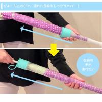 | 持ち運びはコンパクト!ビヨーンと伸ばして濡れた長傘をしっかりカバーします! 傘をカバーにいれてカバー側をスライドして収納するので、手が濡れることがありません! |