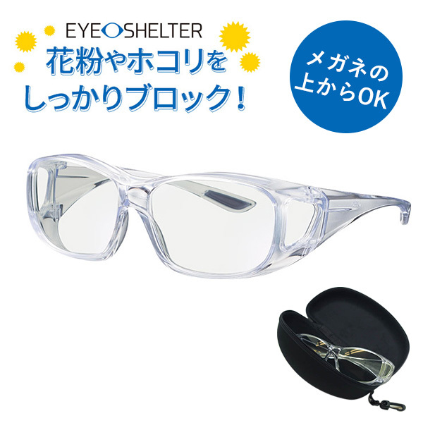 | 花粉やウィルスが気になる季節、あなたの目の周りをアイシェルターが守ります! 花粉やホコリをしっかり防ぐフレーム形状となっており、メガネの上からでも掛けられるオーバーグラスタイプ。 軽くてしなやかなフィット感のナイロン系素材で長くかけていても痛くなりづらく、サイドレンズ装備で広い視界を確保。持ち運びに便利なセミハードケース付きで、気になった時にサッと装着できます。 ◆紫外線をほぼ100%カット ◆酸化ストレスやルテイン劣化に影響を与えるHEV*を約94%カット * HEV…Hight Energy Violetlight:400〜420nm(HEVはブルーライト波長域全てを示すものではありません) |
