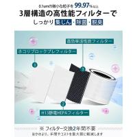 | 〇空気中に発射されたプラズマイオンはファン式の風が行き届かない場所の汚れた空気も死角なく浄化し、空気中または服に付着した花粉・ウイルス・タバコ煙、匂い、菌などの活動を抑制します。 〇H13静電HEPAフィルターは、花粉・ほこり・ハウスダスト・ウイルス・PM2.5など0.1μmまでの微細粒子を99.97 %以上しっかり除去し、花粉症や鼻詰まりやくしゃみなどのアレルギー症状を解消します。 〇消臭専用のハイグレード活性炭フィルターは、タバコ臭、トイレ臭、ペット臭、部屋干し衣類の生乾き臭など、気になるニオイを緩和します。プレフィルターは髪の毛や繊維、ホコリなどの大きなゴミを捕捉し、フィルターの寿命を向上させます。 |