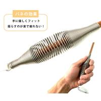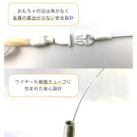 | ■「ばねじゃらし」は、ばねグリップ、先端ばね、超弾性ワイヤーの3つの弾性効果が掛け合わさり生き物のような独特の動きを生み出します。 ■ばねグリップのばねは柔らかく手に優しくフィットします。耐食性が高く、アレルギーが起きにくい医療用のステンレス SUS316を採用。金属臭もせずに清潔です。 ■手に隙間を開けてグリップ部を軽く握り、グリップの中の棒を揺する感じで操作すると力がいらず手が疲れません。簡単に自由自在に動かすことができ、先端のおもちゃの動きも不規則になります。 ■先端のばねはおもちゃを引っ張られた時に曲がり伸びる事ことによりクッション性を発揮し、猫や飼い主さんにとっても優しいです。 ■超弾性ワイヤーがグリップばねと先端ばねの弾性効果をさらに高めます。 ■交換おもちゃは、丈夫な連結パーツでワンタッチで交換できます。金属製ではないので安心。 |