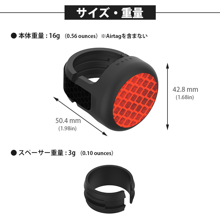 | 仕様 | ■互換性:AirTag ■商品保証期間:1年 ■ブランド名:Maco ■開発社:hellomaco社(オーストラリア メルボルン) |