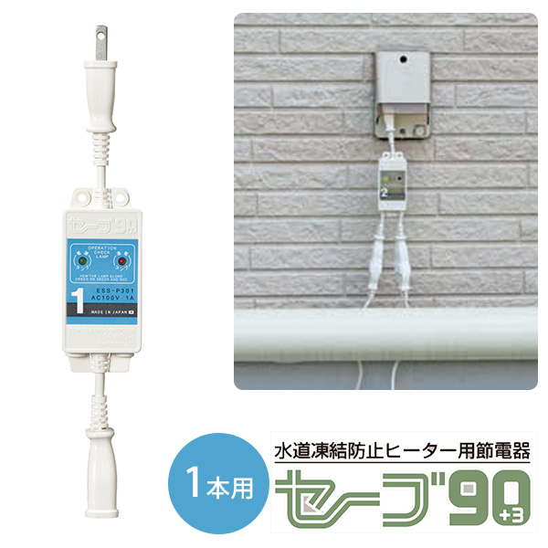 | 寒冷地では水道管の凍結を防ぐために水道凍結防止ヒーターが使われていますが、この水道凍結防止ヒーターにかかる電気代は冬場ワンシーズンでおよそ45,000円程度の電気代がかかっています。 ※11月〜4月の期間、40Wヒーターを10本使用した場合の概算金額です。 30年の経験と実績で培った技術でさらに進化を遂げたセーブ90。 水道凍結防止ヒーター用節電器「セーブ90+3」はご家庭の水道凍結防止ヒーターに取り付けるだけで水道凍結防止ヒーターの電気だを約90%節約します。 特許技術FTC比例制御回路に新開発の3つの技術(ITCケース/FWR構造/O.C/LAMP)をプラスして当社従来品より節電性能・耐久性・扱いやすさが向上しました! ●専門機関にも認められた確かな節電技術。 特許FTC比例制御回路に加えて新開発IHCケースとFWR構造の相乗効果で脅威的な節電を実現。 ※(財)省エネルギーセンター主催 平成5年度省エネバンガード21 省エネルギーセンター会長賞受賞 ●取り付けはとっても簡単。取り付け後はムダな電気代はかからないから一年中接続したままでOK。 本格的に寒くなる前の取り付けが効果的。 |