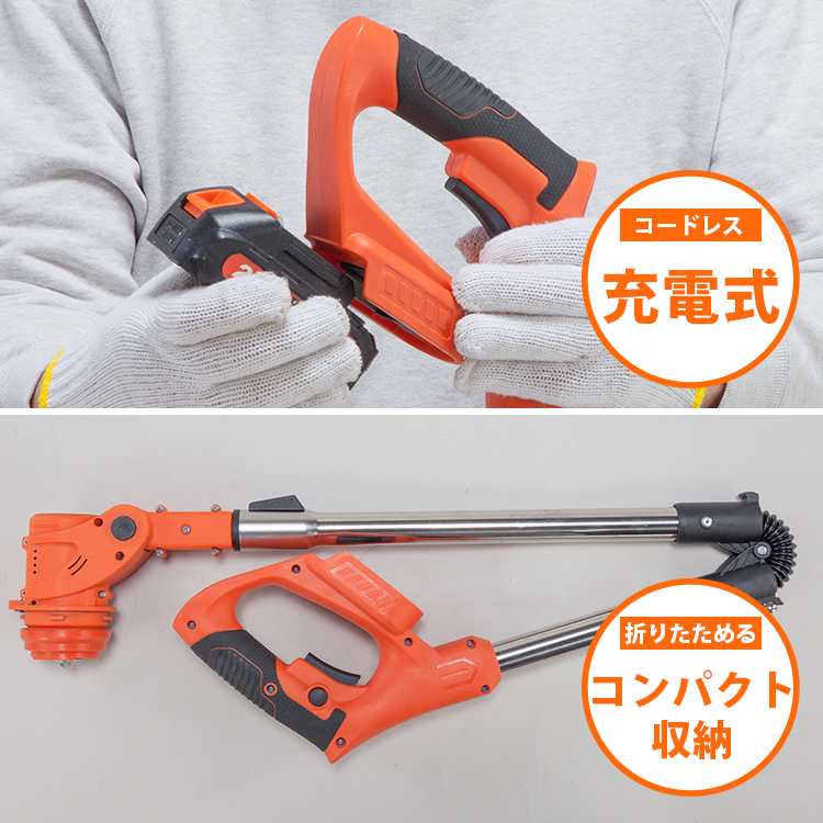 | 仕様 | ■電源:AC100V ■充電時間:約3時間 ■連続使用時間(目安):無負荷時/約20分・作業時/約15分(※環境により異なる) ■バッテリー容量:約1,500mAh ■回転数:9,500回/分 ■一部組立式 ■6ヵ月間保証書付き ※2025/10/15〜メーカー後継品へページ変更いたしました。 ※3WAY→4WAY草刈り機へパワーアップ!替え刃が増え、補助輪付きで草刈りがもっと楽に。 ※その他、詳しい内容はページ内をご確認ください。 |