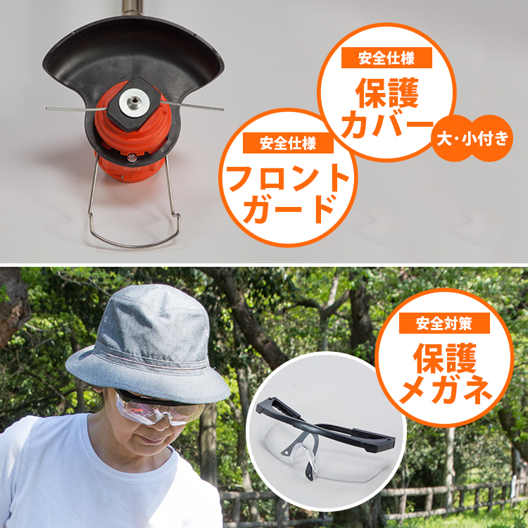 | 素材・成分 | 本体:ポリプリピレン・スチール チップソー替刃:マンガン鋼 ステンレス替刃:ステンレス ナイロン替刃:ナイロンコードカッター・ナイロン樹脂・ステンレス 保護用メガネ:ポリカーボネート |