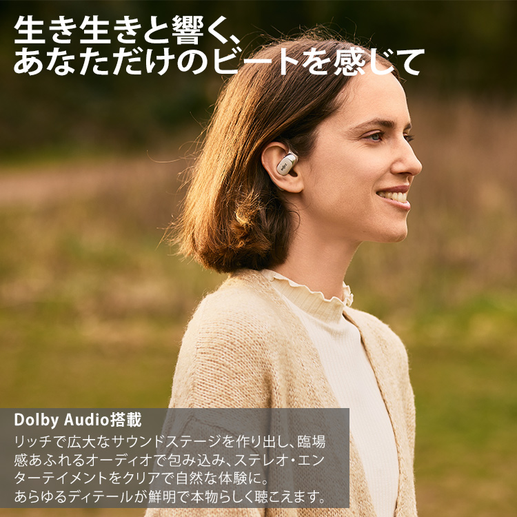 | DualBoostテクノロジーにより、より大きく優れた、ダイナミックなオープンイヤーサウンドを実現。 人間工学に基づいたデザインとアップグレードされた内部シリコン層を備え、快適でしっかりと装着でき、音楽を存分に楽しむことができます。 |