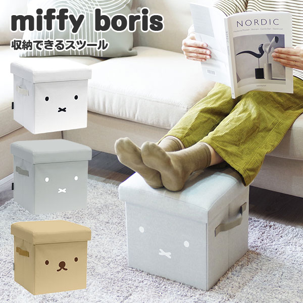| 散らかりやすい小物類を収納できる、便利な持ち手つきのスツールです。 スツールや収納以外にも、ソファの近くに置いて、オットマンやサイドテーブルとしても使えて便利。 かわいいミッフィー・ボリスのお顔のデザインで、並べておくとさらにお部屋がかわいくなります。 使わない時にはコンパクトに折りたたんで収納できます。 |