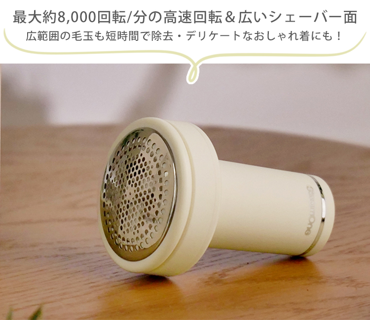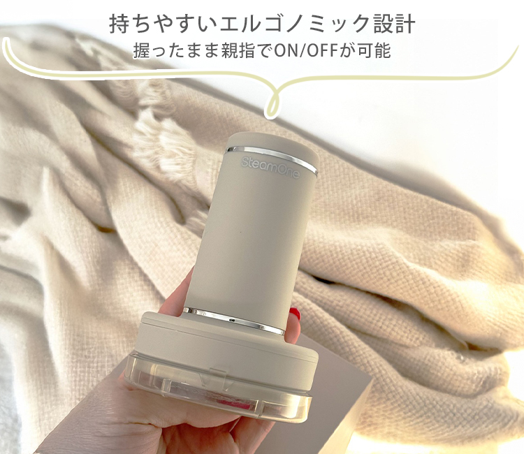 | 衣類ケアのプロSteamOneが手がけ、好評を博している充電式電動毛玉取り「Anti-lint shaver」に限定カラーIVORYが登場いたしました。 ナチュラルな印象のIVORYは、BLACKと同様マットな質感。電化製品でありながら柔らかな雰囲気を纏い、インテリアに馴染みます。 ●持ちやすいエルゴノミック設計 SteamOneオリジナルの洗練されたデザイン。 握ったまま親指でON/OFFができ、軽量でコンパクトなサイズは長時間使用しても疲れない。 ●最大約8,000回転/分の高速回転 パワフルな回転スピードとステンレスの3枚刃で広範囲の毛玉も短時間で除去。 ●デリケートガードで繊細な衣類も安心 カットの深さを調節できるデリケートガードを取り付けられる広いシェーバー面はハニカム構造を採用し、毛玉をしっかりキャッチ。デリケートなおしゃれ着にも最適。 ●約70分の充電で最大約45分稼働 充電が少なくなったらLEDランプが赤く点灯。便利なUSB Type C 充電式。 |