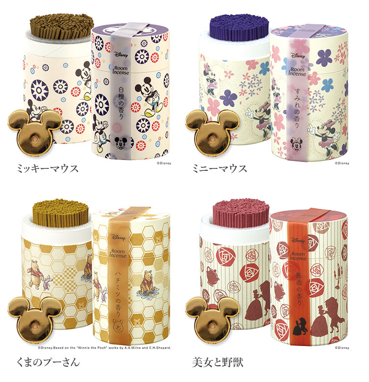 | 仕様 | ■けむり:少ない ■香り ミッキーマウス:白檀の香り ミニーマウス:すみれの香り くまのプーさん:はちみつの香り 美女と野獣:薔薇の香り ■燃焼時間 約19分 燃焼時間は無風・気温20〜28度前後の環境下における平均値です。 湿度・気温・風など使用状況により変動します。 |