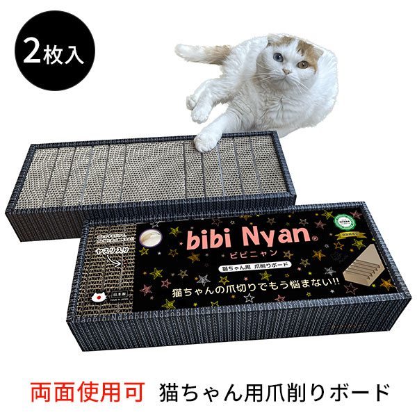 | ●毎日の爪とぎだけで爪が削れ、爪切りが不要に! 猫の習性である「爪とぎ」を利用して自然に「爪が削れる機能がついた新しい爪とぎボード」を開発しました。 bibi Nyanは、猫も猫オーナーもストレスになる、爪切りの負担を軽減し、猫ちゃんとの良好な関係をサポートいたします。 ●爪切り嫌いの猫ちゃんも安全安心 1日の爪とぎ回数にもよりますが、猫ちゃんが爪とぎをするだけで、およそ1週間後には爪の先端が削れた状態になります。 爪切りでいうちょい切り効果が現れましたら、深爪(削り過ぎ)を防ぐためヤスリのない面で爪とぎをさせてあげてください。 bibinyanのヤスリ面は、積層ダンボールにあるスリット部分に装着されたヤスリに爪の先端が接し、爪が削れます。 ヤスリにはクッション性があるため爪にフィットし、爪先がやさしく削れます。 ●猫ちゃんの事を第一に考えた商品づくり bibi Nyan の段ボールには環境にやさしいリサイクル紙、接着剤にはコーンスターチを使用しています。 また、ヤスリ部分の砥粒は有害な遊離シリカや重金属を含まない天然素材のガーネットを、クッションには生体毒性のない発泡ポリエチレンを使用しています。 開発時には効果の検証のため、十数匹の猫ちゃんにご協力いただいており、安全に使用していただけることが実証済みです。 特に、普段爪とぎにダンボールを利用している猫ちゃんたちは比較的抵抗も少なく、確実に爪削りの効果を確認することができました。 |