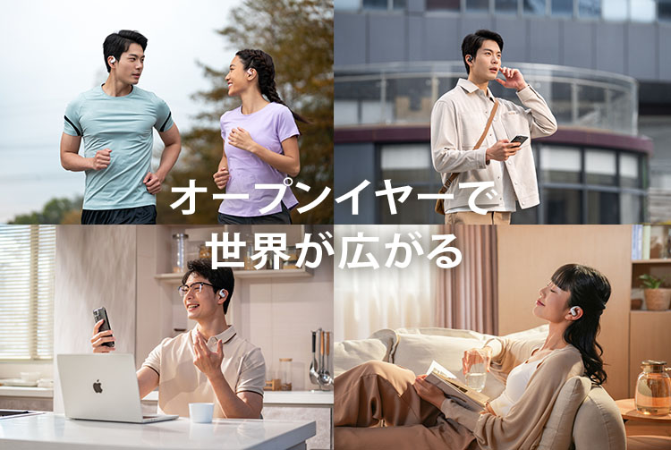 | Shokzの特徴でもある耳を塞がないタイプのデザインで、究極のマルチタスカーに!移動中も、一息つきたい時も、ToDoリストを管理する時も、周りの世界と繋がりながら音楽を楽しめます。 ●音楽を楽しみながらランニング ●通勤通学時、外出時の音楽体験も安全に ●仕事に集中しながら、会話も楽しめる ●音楽、ポッドキャスト、オーディオブックなどを、家族の時間を損なうことなく楽しむ |