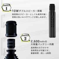 ♪高音質のスピーカーとしても使用可能! スピーカーは、最大出力10Wのダブルスピーカー搭載。 ♪2,600mAhの大容量バッテリー内蔵 長時間のカラオケや音楽再生が可能です。 ♪機能充実 ボイスチェンジ(男性/女性/子供)やボーカルカット、エコーなど機能も充実。 Bluetooth接続、microSDカードの挿入、外部機器出力の3種類の再生方法が選べます。 ♪本格的 付属の専用のマイクスタンドホルダーを使えば本格的なマイクに早変わり!動画の実況や歌の録音に集中できます。 ♪スリムボディ&収納ケース付き すっきりとしたスリムでスタイリッシュなデザイン。専用ケース付きで収納はもちろん持ち運びにも便利! |