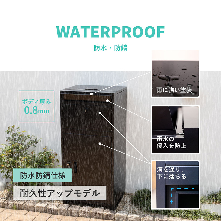 | ●複数の投函口で、複数回の投函ができる メール便から大きな郵便物まで、3つの投函口で受け取れます。 1日に複数個の投函でも安心! ●いろんなタイプの郵便物を投函できる 上下の受け取り口で、レターパックやメール便、中型〜大型宅配物はもちろん、特大サイズの投函も可能です。 ●トップレベルのセキュリティ性能 盗難防止プレート、上下ダイヤルキー、盗難防止ワイヤーロックで盗難の心配なし。 また、使いやすくてセキュリティ性能が高いゼロリターンキーを採用しています。 ●雨水が内部に侵入しにくい構造&防水・防錆・耐久性アップモデル! 雨に強い塗装で防水・防錆仕様となっており、堅牢度もアップして郵便物を守ります。 その他、細かい便利装備も充実しています。 ※完全防水ではございません。軒下等屋根のある場所への設置をお願いします。 ●設置場所に合わせた設置方法を選択できる そのまま設置でき、付属のアンカーボルトやワイヤーなどを使用して場所に合わせた設置方法も選べます。 |