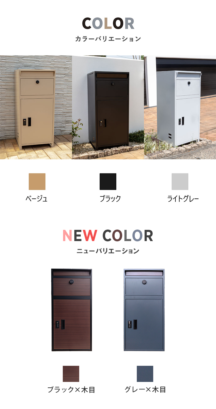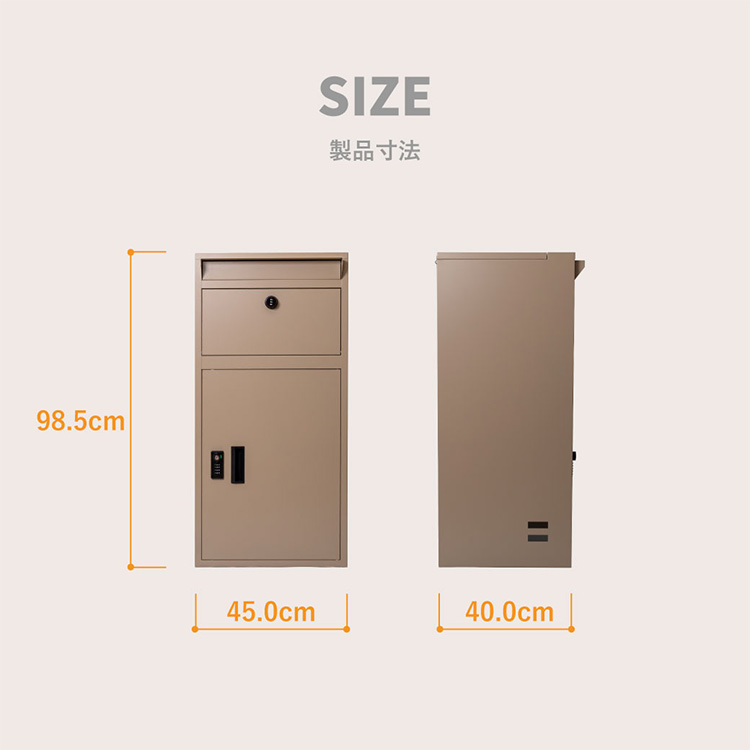 | ※メール便投函口は奥行きが短い為、曲げられない郵便物は投函できない場合があります。中型宅配物・大型宅配物の投函口をご利用ください。 ※庫内構造上奥行が短い部分があります。 ※高さ54センチを超えるものを投函した場合、庫内の盗難防止プレートと干渉し上部投函口が開かなくなります。 ※本製品は完全防水ではございません。 ※強風、雨天時には雨が侵入する可能性がございます。屋根のある場所へ設置してください。 ※また、長時間雨ざらし、日光に当て続けると、変色・錆の原因となります。 ※永くご使用いただくため設置場所・ご使用方法を守っていただき、定期的な清掃・お手入れをお願い致します。 ※台風等の悪天候の場合には安全な場所へ移動させてください。 ※商品の色はモニターの具合で実物と若干異なる場合がございます。予めご了承下さい。 ※ご予約・お取り寄せ商品・メーカー直送商品は、ご注文受付後にお客様ご注文分としてメーカーへ発注を致します為、基本的にキャンセルや返品交換はお受けできません。 ※デザイン、仕様等につきましては、予告なく変更する場合がございます。予めご了承下さい。 ※ご注文後にメーカーへ在庫確認をさせていただきますため、万が一、メーカー都合により商品がご用意できない場合は、改めてご連絡差し上げます。誠に恐れ入りますがご了承くださいますよう、お願い申し上げます。 | |