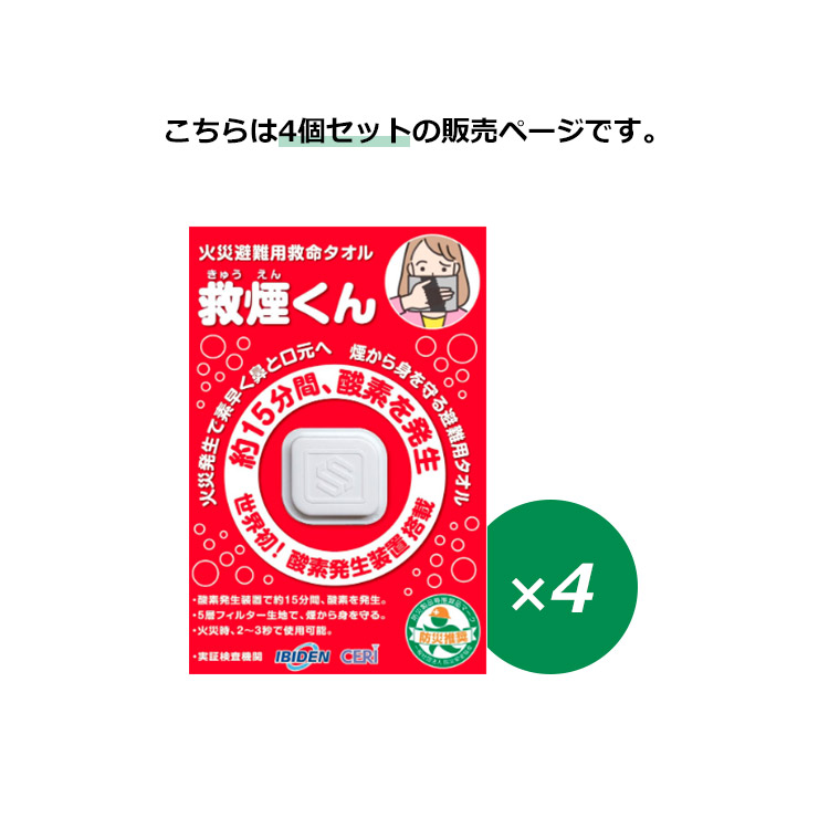 | 商品名 | 4個セット 火災避難用救命タオル 救煙くん |