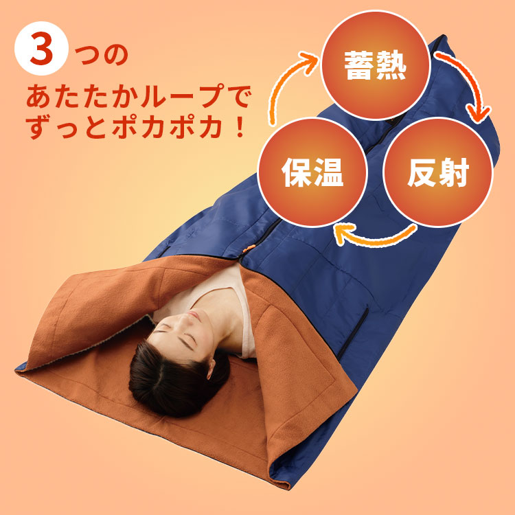 | 暖房や電気毛布に頼りたくない冬の節電対策に。 独自の「アルミ蓄熱×中わた保温」が、あなたの体温を反射して魔法瓶のように暖かさをキープします。 普段はクッションとしてそばに置けるから、いざという時の備えも万全です。 【独自のニードル加工で「ムレにくく、静かで、圧倒的に暖かい」】 驚異の蓄熱性: アルミシートが体温を反射し、中わたが熱を逃がしません。 音とムレを解消: 特殊加工により、アルミ特有の「シャカシャカ音」と「蒸れ」を大幅に軽減。 自由なスタイル: 腕出しファスナー付きで、着たままスマホ操作やデスクワークが可能。 4WAY仕様: 寝袋・掛け布団・着る毛布・ひざ掛けとしてマルチに活躍。 クッションに変身: 収納すればふかふかクッションに。出しっぱなしでもインテリアに馴染みます。 丸洗いOK: 汚れが気になったら洗濯機へ。いつでも清潔に保てます。 |