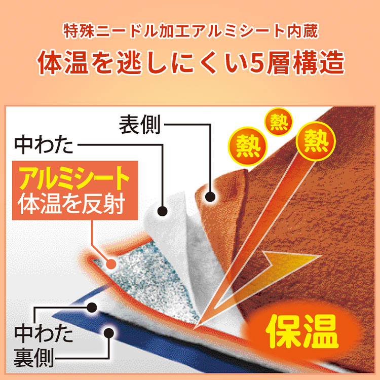 | 素材・成分 | 表側・裏側:ポリエステル100% 中わた:ポリエステル100%(アルミシート入り) カバー:ポリエステル100% |