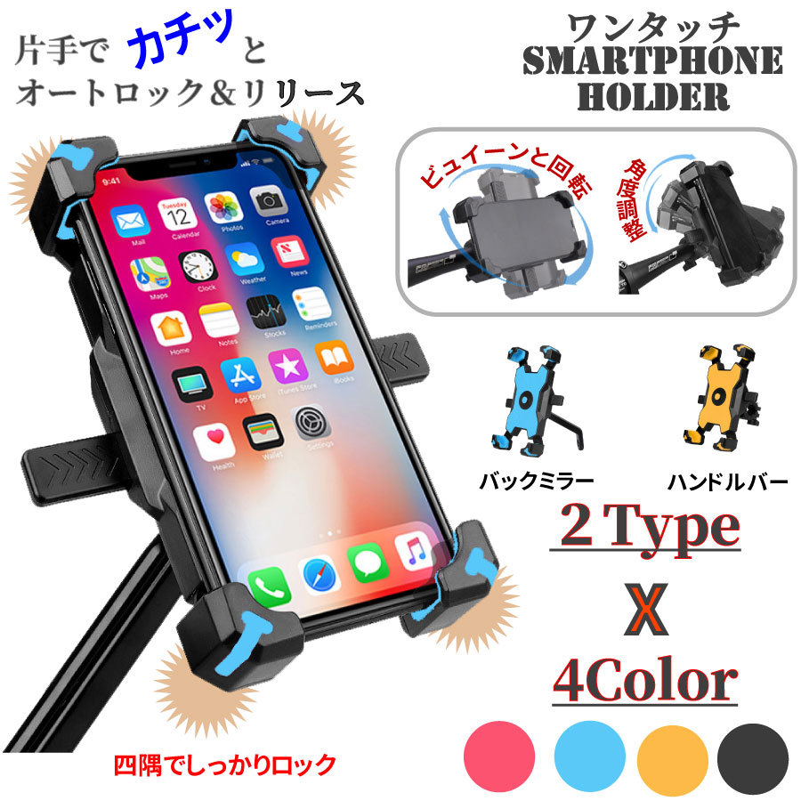 自転車バイク スマホホルダー ワンタッチ バックミラー ハンドルバー