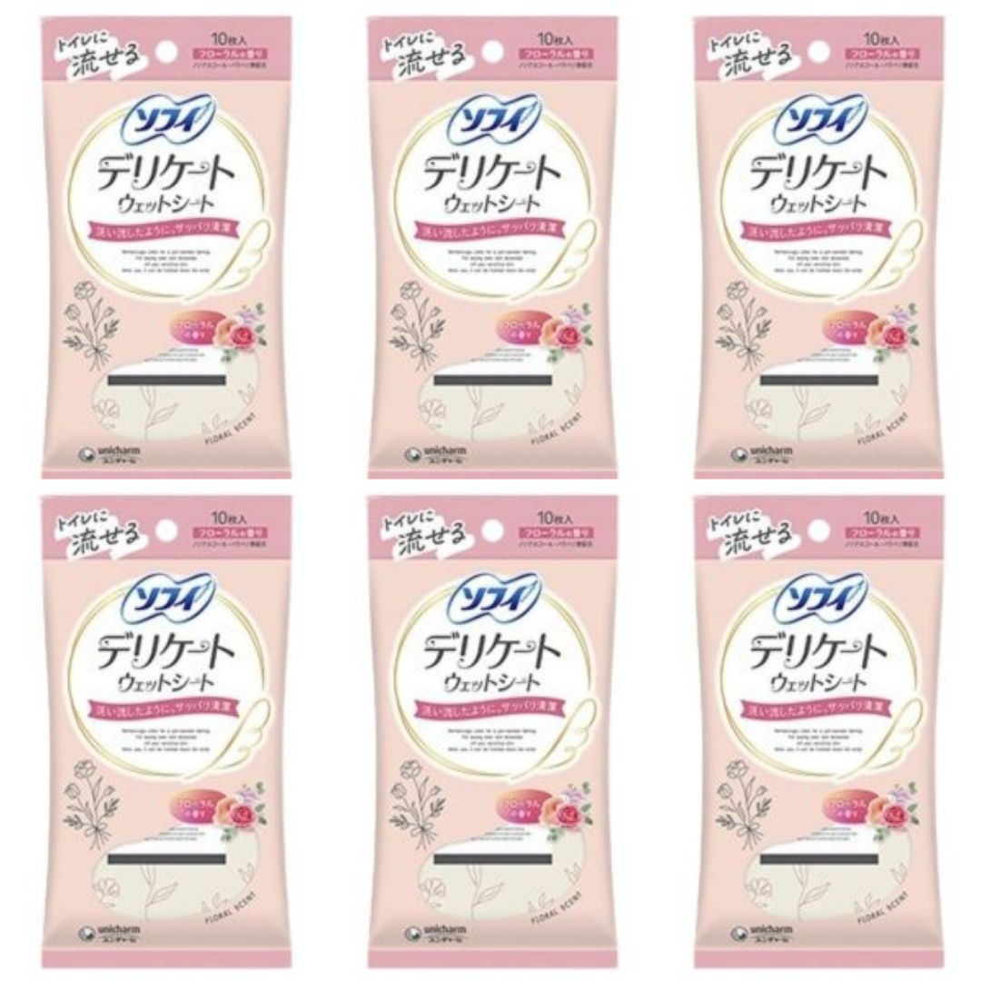 【まとめ買い】ソフィ デリケートウェットシート フローラルの香り 10枚入 × 6袋