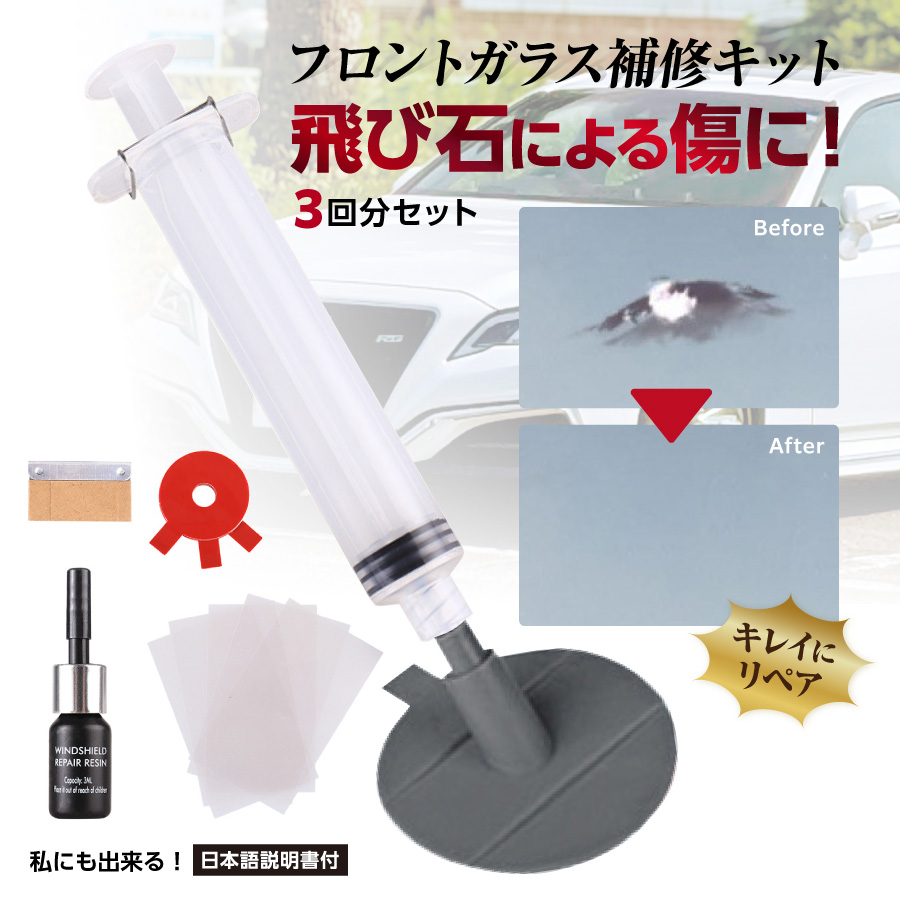 フロントガラス 修理 修復 傷消し キズ消し 飛び石 車 リペアキット ガラスリペア ガラス セルフ フロントガラス補修キット