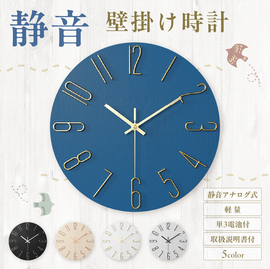 時計 壁掛け時計 北欧風 木目調 静音 軽量 電池式 かわいい リビング 寝室 子供部屋 大きい 文字