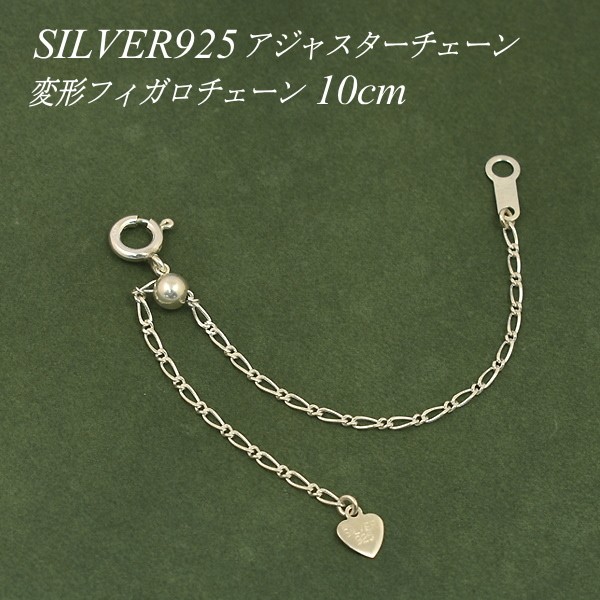 アジャスターチェーン スライド式 延長 チェーン 10cm 変形フィガロチェーン シルバー925 ハートのパーツ付き