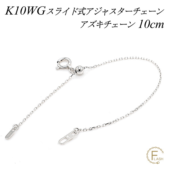 アジャスターチェーン スライド式 延長 チェーン 10cm 10金 K10 ゴールド アズキチェーン 日本製 ホワイトゴールド
