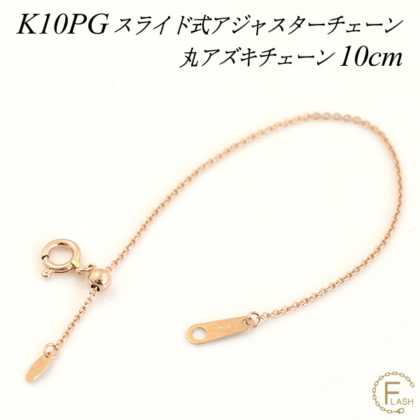 アジャスターチェーン スライド式 延長 チェーン 10cm K10 10K 10金 ゴールド 丸アズキチェーン ピンクゴールド