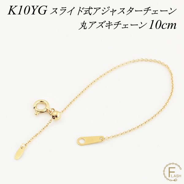 アジャスターチェーン スライド式 延長 チェーン 10cm K10 10K 10金 ゴールド 丸アズキチェーン イエローゴールド