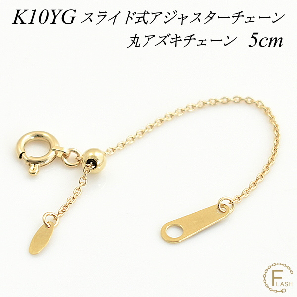 アジャスターチェーン スライド式 延長 チェーン 5cm K10 10K 10金 ゴールド 丸アズキチェーン イエローゴールド