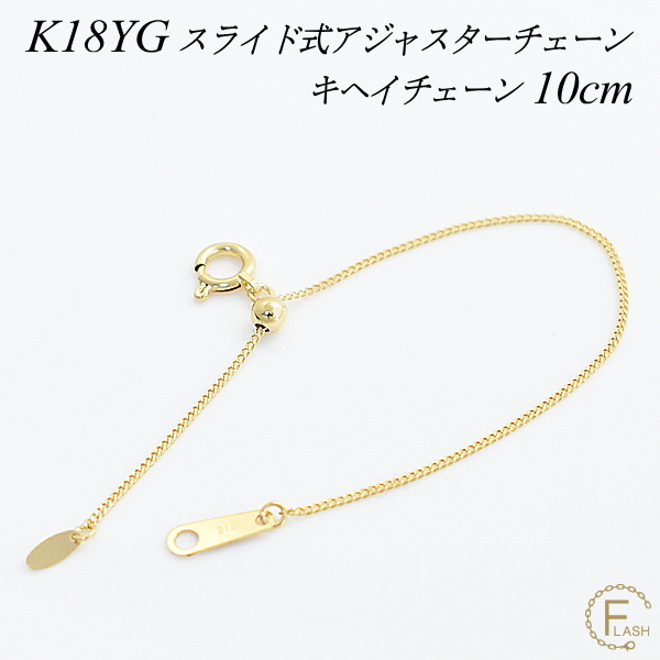アジャスターチェーン スライド式 延長 チェーン 10cm K18 18K 18金 ゴールド 喜平チェーン 日本製 イエローゴールド