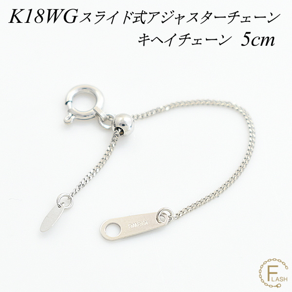 アジャスターチェーン スライド式 延長 チェーン 5cm K18 18K 18金 ホワイトゴールド 喜平チェーン 日本製
