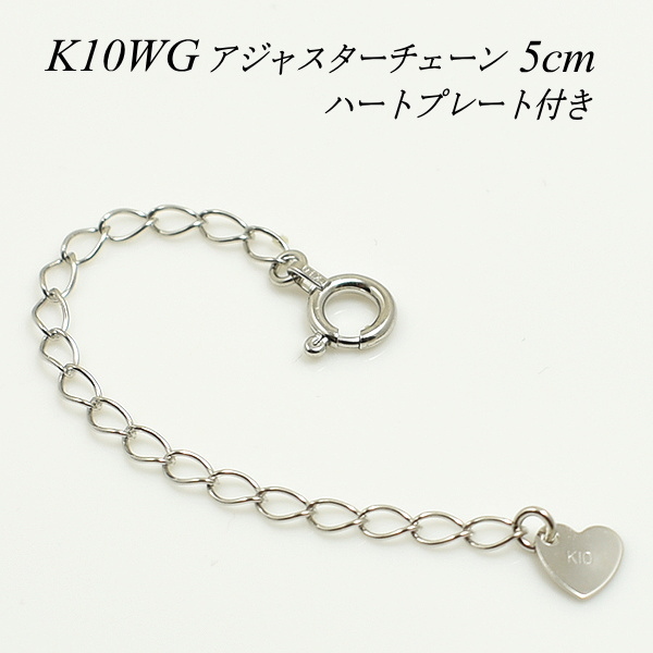 アジャスターチェーン 10金 K10 ゴールド 延長 チェーン5cm ハートのプレート付き 日本製 ホワイトゴールド