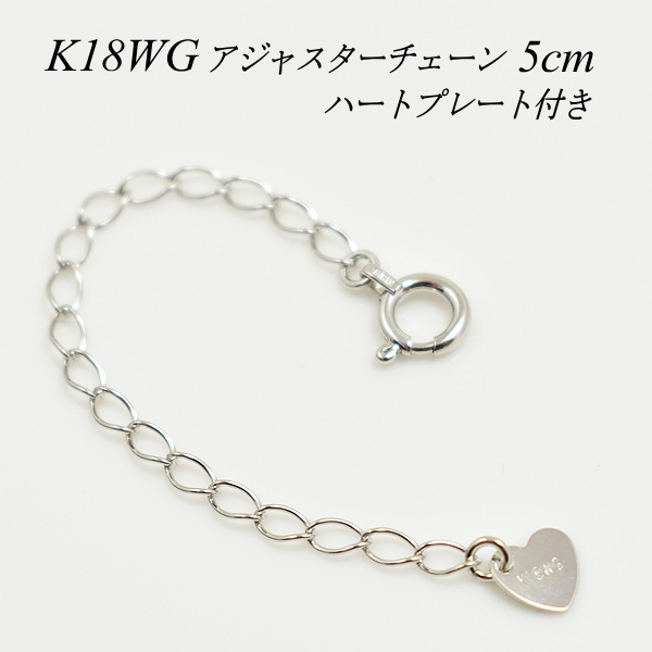 アジャスターチェーン 18金 K18 ゴールド 延長 チェーン5cm ハートのプレート付き 日本製 ホワイトゴールド
