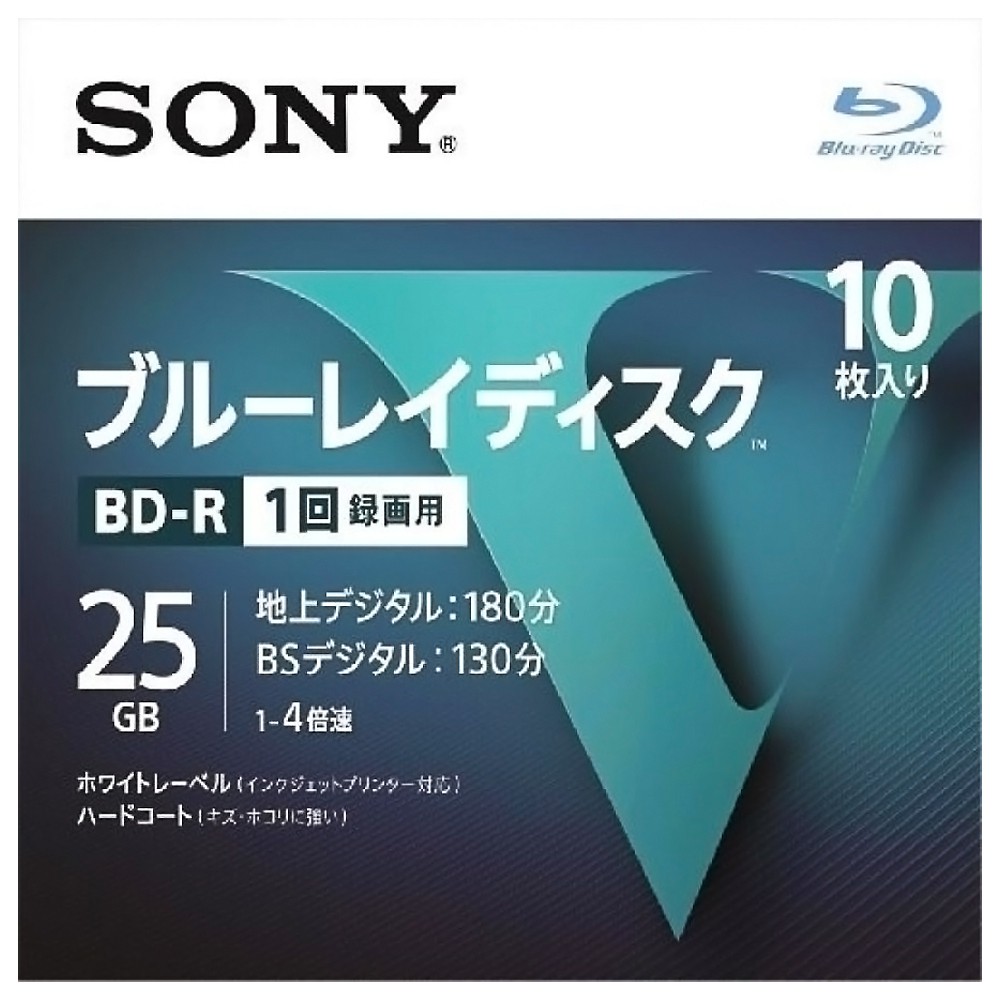 ブルーレイディスク BD-R 25GB 1回録画用 10枚 SONY ソニー 1-4倍速 ホワイトレーベル ハードコート 5mmスリムケース入り 10BNR1VLPS4 ◆宅