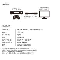 HDMIケーブル ver2.0 プレミアムハイスピード 7.5m miwakura 美和蔵 18Gbps / 4K 60Hz / HDR / 3D / イーサネット / ARC対応 750cm ブラック MAV-HDM2075 ◆宅