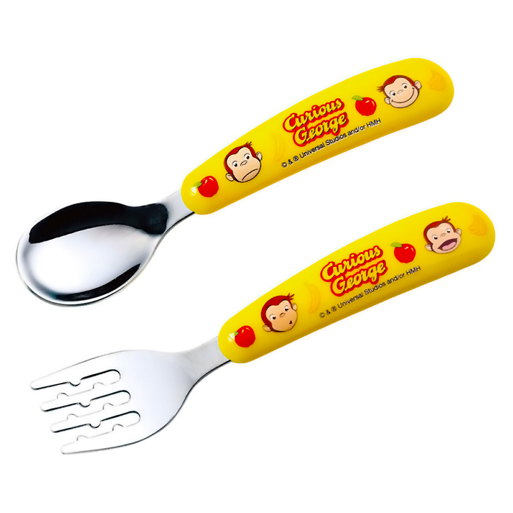スプーンフォークセット おさるのジョージ ステンレス製 SKATER 可愛い 約13cm 凸凹形状 子供 ベビー向け 太め 立体グリップ 食洗機対応 573996-SFBS1 ◆メ