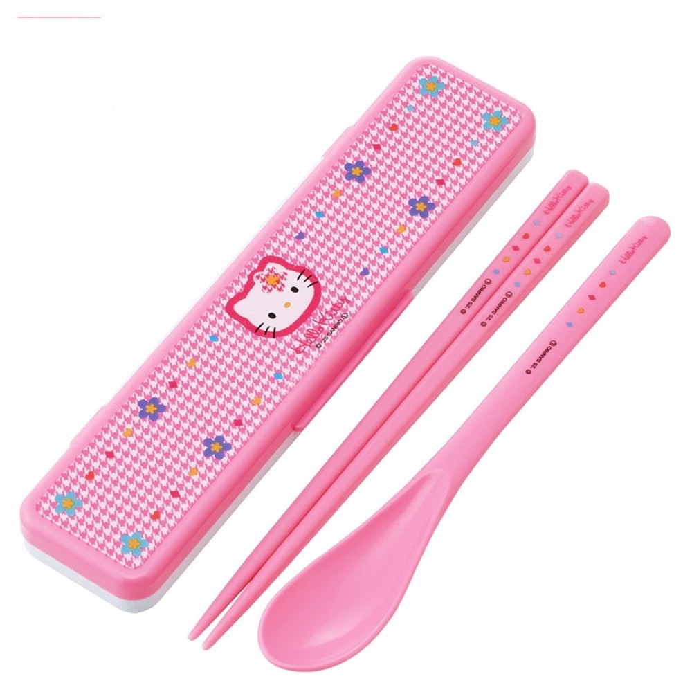 弁当用箸 ハローキティ カオハナ 音のならないコンビセット SKATER 子供 箸/スプーン18cm すべり止め加工(箸先端) 収納ケース 711459-CCS3SAAG ◆メ