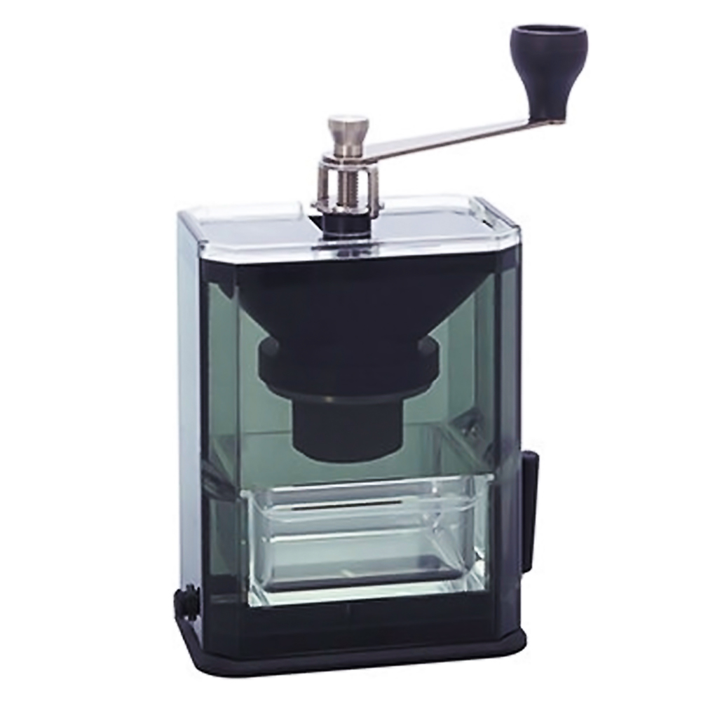 コーヒーミル コーヒーグラインダー HARIO ハリオ 吸盤固定式 手挽き セラミック製臼 容量:コーヒー粉40g 文庫本サイズ クリア 透明ブラック MXR-2TB ◆宅