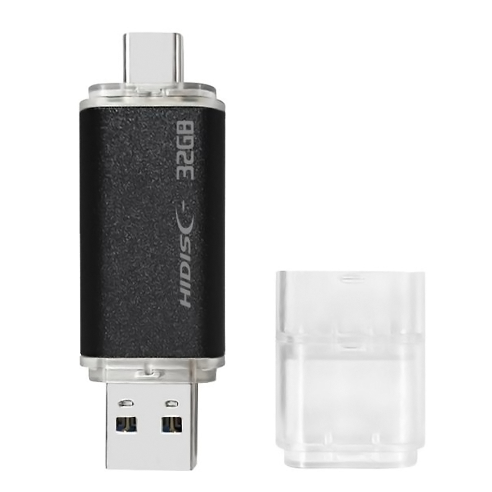 USBメモリ USB 32GB スマホ・PCで使える HIDISC ハイディスク USB3.2 Gen2 Type-C / USB-A両コネクタ搭載 キャップ式 ブラック HDUF136C32G3C ◆メ