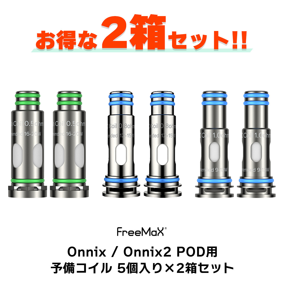 | ・0.5Ωのコイルは【Onnix2】にはお使いいただけませんのでご注意ください。 ・新品のコイルをご使用いただく際は、リキッド注入後5〜10分程度お待ちいただいてからご使用を開始してください。 | |