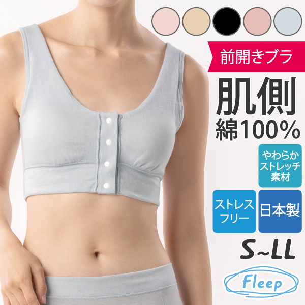 ブラジャー 前開きブラ ハーフトップ ナイトブラ ノンワイヤー フロントホック Fleep フリープ 日本製 乳がん 乳癌 乳ガン 術後 ネコポス可 81052 bra 四十肩