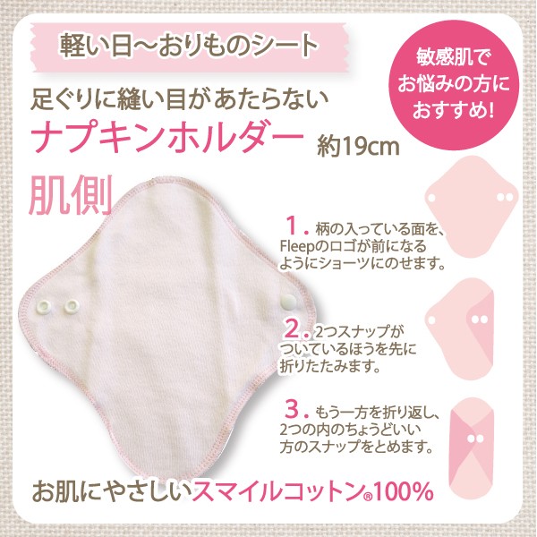ナプキンホルダー おりものシート ライナー お肌にやさしい下着 Fleep フリープ 布ナプキン サニタリー 日本製 ネコポス可 86006new 花柄 ドット ストライプ