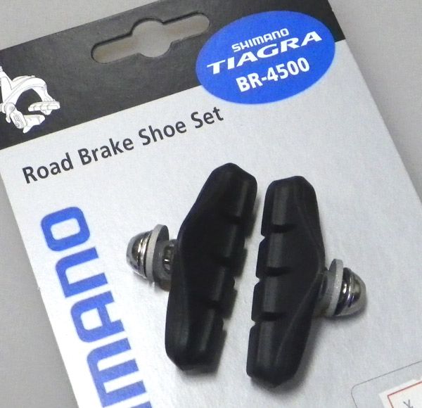 シマノ純正のTIAGRA,SORAグレードの ブレーキシューです。雨天走行時など、減りが早くなります。ブレーキング時に音がでるようになったから、すぐに交換しましょう。