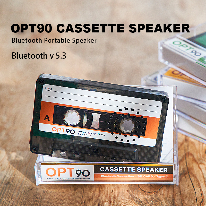 Opt! OPT90 カセットスピーカーは、ぱっと見カセットテープにしか見えないほどリアルにカセットテープのデザインが再現されています。