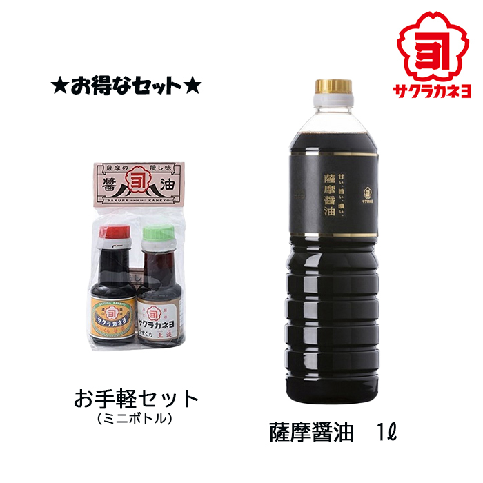 サクラカネヨ 薩摩醤油1000ml お手軽セット付 お試し こいくち うすくち しょうゆ 鹿児島