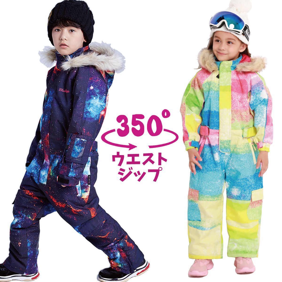スキーウエア キッズ つなぎ ワンピース ジャンプスーツ 350度ファスナー(袖と股下の長さ調整紐付き)125 130 140 150 雪遊び スノボウェア スノーウエア
