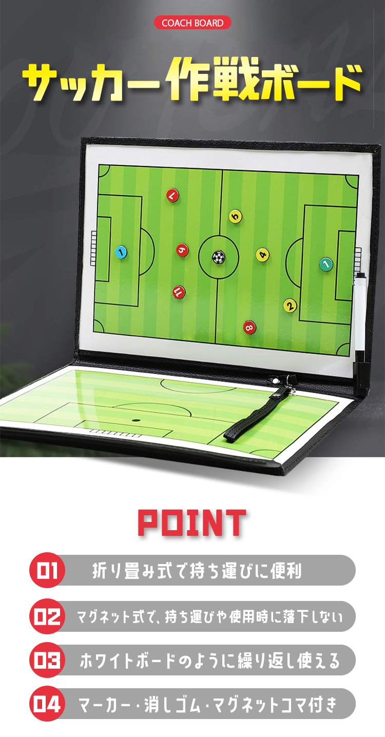 サッカーボード 作戦盤 コーチボード 折りたたみ ボード サッカー コーチング 戦略たてボード クリップボード